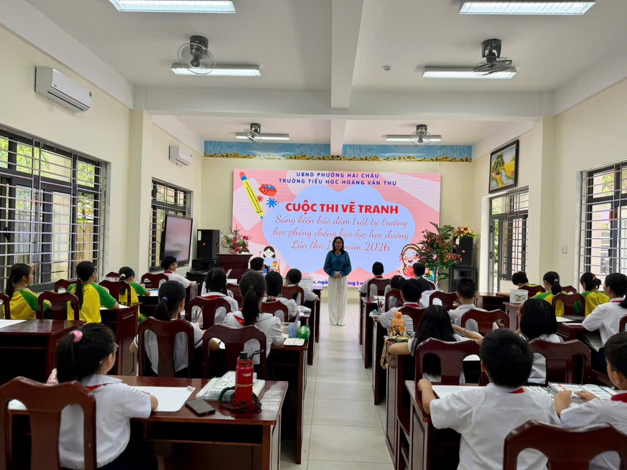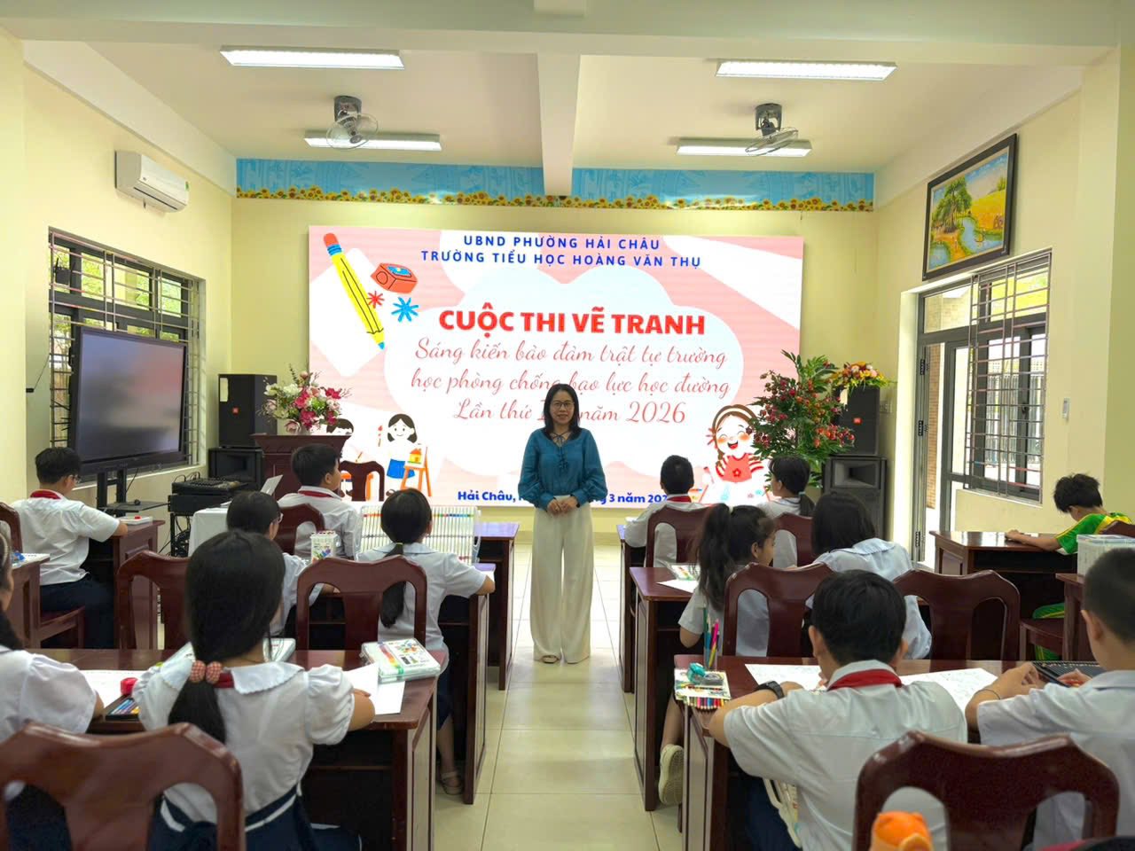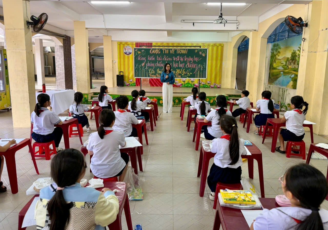 Nhằm nâng cao nhận thức của học sinh về việc xây dựng môi trường học đường an toàn, thân thiện và không có bạo lực, chiều ngày 5/3, Trường Tiểu học Hoàng Văn Thụ tổ chức Cuộc thi vẽ tranh với chủ đề “Sáng kiến bảo đảm trật tự trường học về phòng chống bạo lực học đường” lần thứ III – năm 2026.