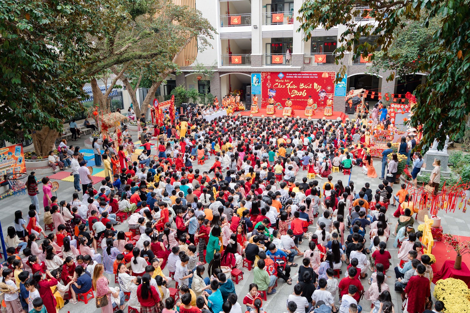 “Bính Ngọ Xuân về vui khắp lối – Thầy trò rộn rã đón Tết sang” Trong không khí hân hoan chào đón mùa xuân mới, hôm nay Trường Tiểu học HVT tưng bừng tổ chức Ngày hội Chào Xuân Bính Ngọ 2026. Ngày hội là dịp để học sinh được trải nghiệm, khám phá và gìn giữ các giá trị văn hóa truyền thống, bồi đắp tình yêu quê hương đất nước; đồng thời tạo cơ hội để các em thể hiện sự khéo léo, sáng tạo, qua đó phát triển năng lực, phẩm chất và kỹ năng sống. Các hoạt động của ngày hội sẽ mang đến cho các em học sinh niềm vui và những trải nghiệm ý nghĩa với chuỗi hoạt động phong phú, đặc sắc, đậm đà bản sắc văn hóa dân gian: Trang trí góc Tết, trang trí cây mai, cây đào, làm thiệp xuân, bì lì xì Trải nghiệm viết chữ thư pháp, tô tranh dân gian…; Trình diễn trang phục dân tộc đón Tết 3 miền Tham gia sôi nổi các trò chơi dân gian như: Bịt mắt đập trống, ô ăn quan, nhảy bao bố, đi thăng bằng, xem múa lân, đánh trống hội… Trải nghiệm gói bánh chưng, trải nghiệm đi chợ quê ngàyTết. Thưởng thức các giai điệu mùa xuân; thi đố vui tìm hiểu về Tết cổ truyền dân tộc Đặc biệt, hoạt động giao lưu nhảy múa; giới thiệu chia sẻ Tết Việt với người nước ngoài về các phong tục, truyền thống Tết của người Việt Nam Với chương trình vui tươi và ý nghĩa; nhà trường mong muốn đưa văn hoá truyền thống vào trường học. Không gian văn hoá truyền thống được đánh thức và bồi đắp thông qua các HĐTN cụ thể, sinh động. Sân trường sẽ rộn ràng tiếng cười, sắc xuân hiện diện qua từng góc, từng hoạt động. Nhà trường và gia đình thêm gắn kết; các em sẽ yêu hơn và tự hào về văn hoá truyền thống của dân tộc mình. Với tất cả ý nghĩa đó, tôi xin tuyên bố khai mạc NGÀY HỘI CHÀO XUÂN BÍNH NGỌ 2026 của trường TH Hoàng Văn Thụ ngày hôm nay. Xin trân trọng cảm ơn quý thầy cô giáo, các em học sinh và quý phụ huynh đã đồng hành, ủng hộ để tạo nên một Ngày hội Chào Xuân Bính Ngọ 2026 thật sự thành công và đáng nhớ. Kính chúc quý đại biểu, quý thầy cô giáo, quý phụ huynh và các em học sinh một năm mới thành công – vạn sự như ý. Xin trân trọng kính chào!